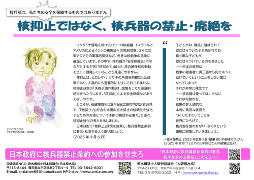 日本政府に「核抑止」政策を放棄し、核兵器禁止条約に署名・批准するよう迫りましょう。