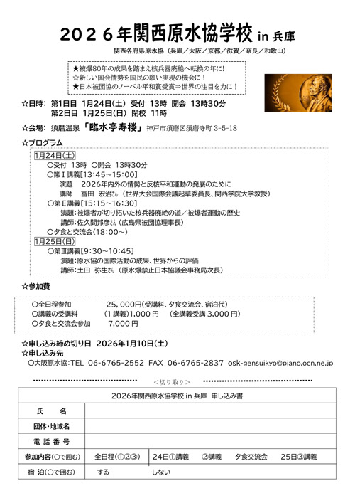 申し込みは、大阪原水協迄お願いします。