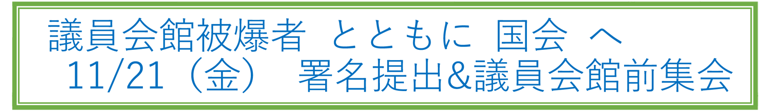 11月21日、私たちは、「日本政府に核兵器禁止条約への署名・批准を求める署名」を提出します。また国会前でも集会を開きます。被爆80年、平均年齢86才を超えた被爆者のみなさんの証言、核兵器廃絶を願う声は、人類全体の声に他なりません。核兵器が何をもたらすのか、被爆者が経験したその地獄は、絶対に繰り返してはならないものです。核兵器禁止 条約に日本も署名し批准する、その決断を迫りましょう。